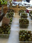 There were organic chickens, eggs, beef, lamb, pork, goat (sold out), quail, Cornish hens, bacon, country hams, sausages and more. I looked for Arcana chicken eggs but didn’t see any. These eggs are naturally laid colors: pink, green, blue, yellow with bright orange yolks. Either the hens aren’t laying or they sold out early.
