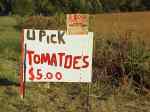 On our way home today, we passed the “Mission Farm” that has huge fertile fields in one of the valleys we drive through all the time. There was a spray painted sign “Tomatoes, u-pick $5.00 bucket” so we turned in.