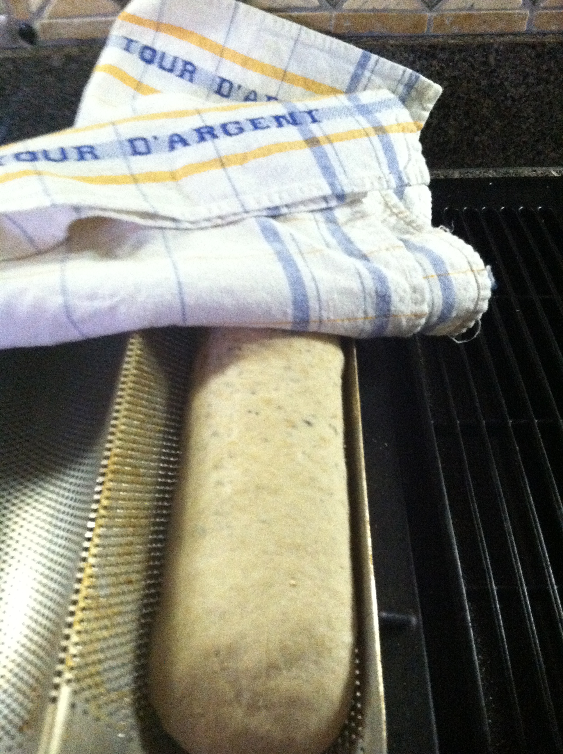 Cover the bowl with an oiled piece of plastic wrap and place in a warm place to rise for the next two hours. If your home is chilly, use the oven on a proof setting or set at 100°F. A gas oven with a pilot light is often enough warmth to proof the bread.