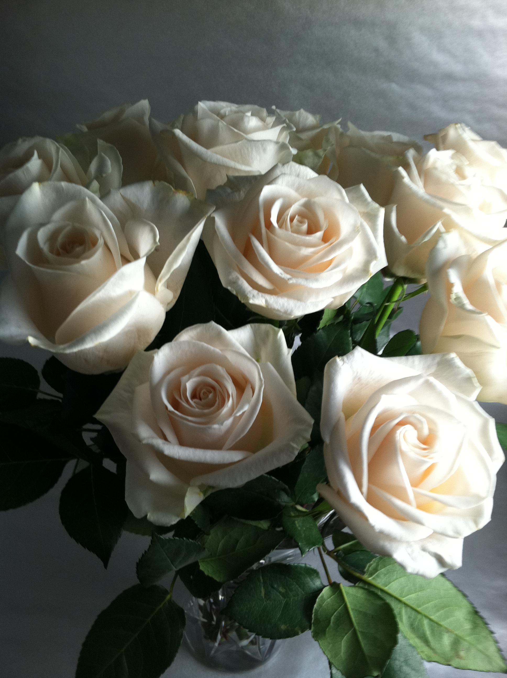 In 3, no background light, the overhead accent lights have been turned up to high.You get the idea these roses are actually white.