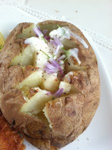 I thought how nice it would be to have some chive blossoms to add to the salad, or sprinkle some over the baked potatoes.
