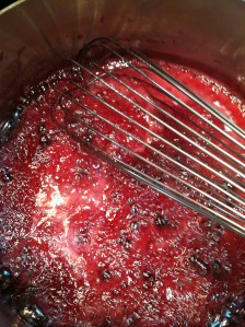 Blend the wine or fruit puree with the applesauce, syrup, liquid pectin in a heavy bottomed sauce pan.