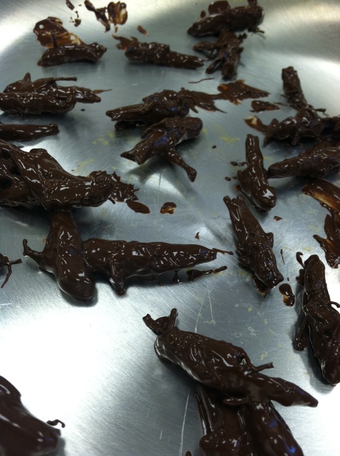 Yong made them nice and crispy and made a Korean style teriyaki sauce and another of his teammates, Andrew, covered them with dark chocolate. Some were paired with cheese on a cracker.