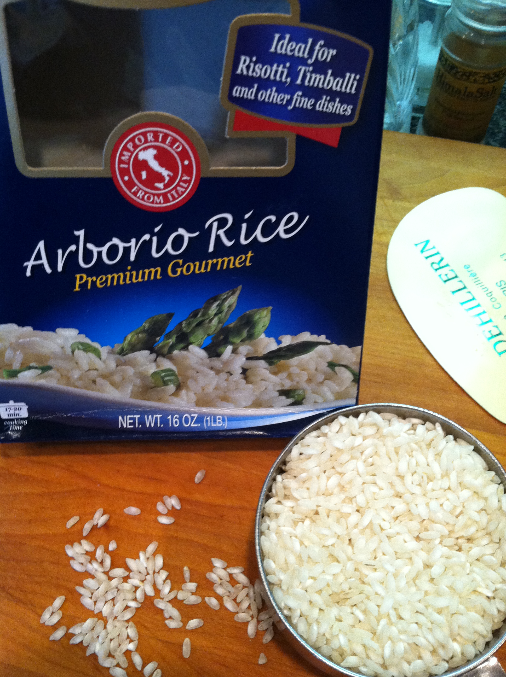 I learned to make risotto the old-fashioned way; by stirring a lot. Stirring makes it creamy. There are some methods where you cook it much like you do plain rice. I don’t find the results as creamy as the stir-like-a-madman method.