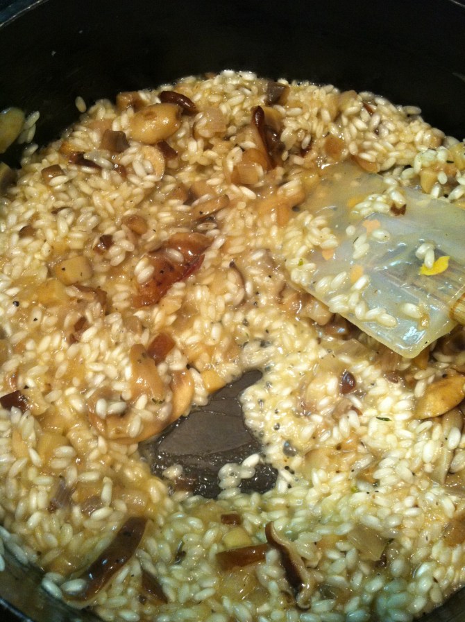 Let’s make  Mushroom Risotto and if you have any left, you can hop over to Frugals site and make the Arancini.
