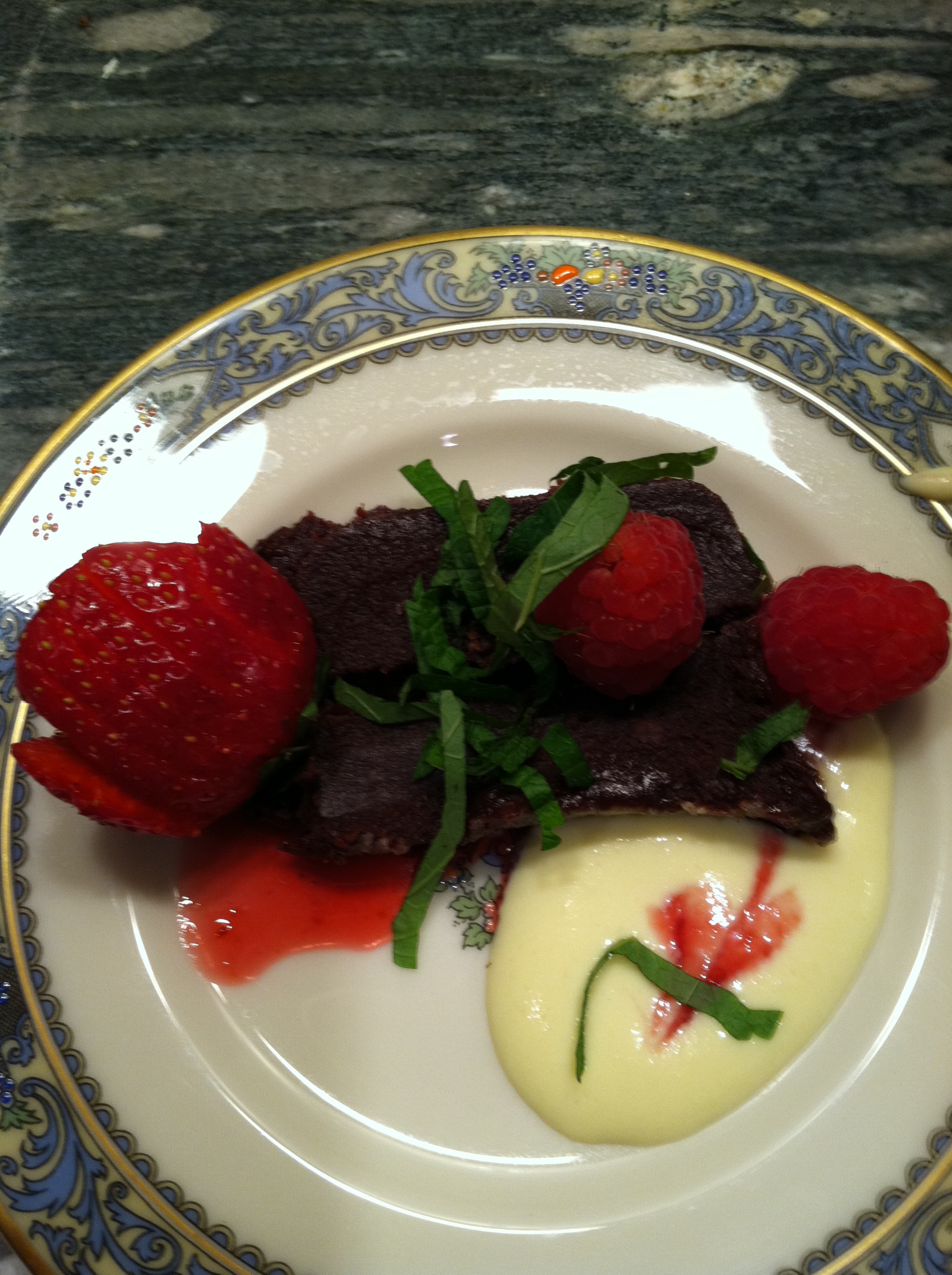 Not being much of a cake baker, I looked at other desserts I was known for at my restaurant. It was a toss-up between Chilled Key Lime Souffle and Chocolate Pate with Raspberry Coulis.