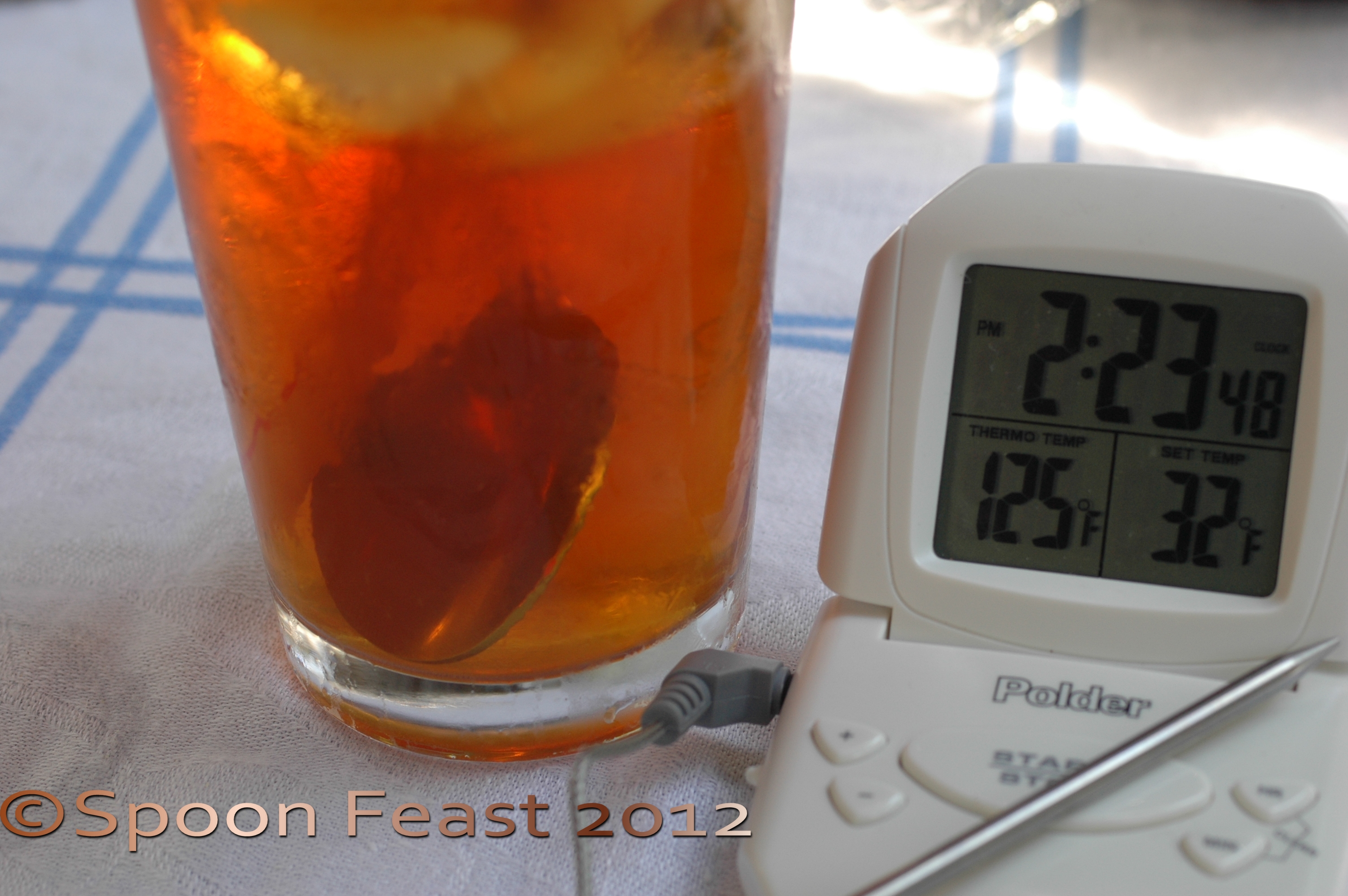 Tea and Thermometer while watching the grill waiting for the bread to bake.