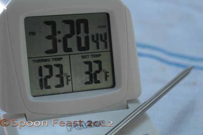 I realize I can’t go inside for very long because I need to monitor the temperature and keep it steady at 450°.