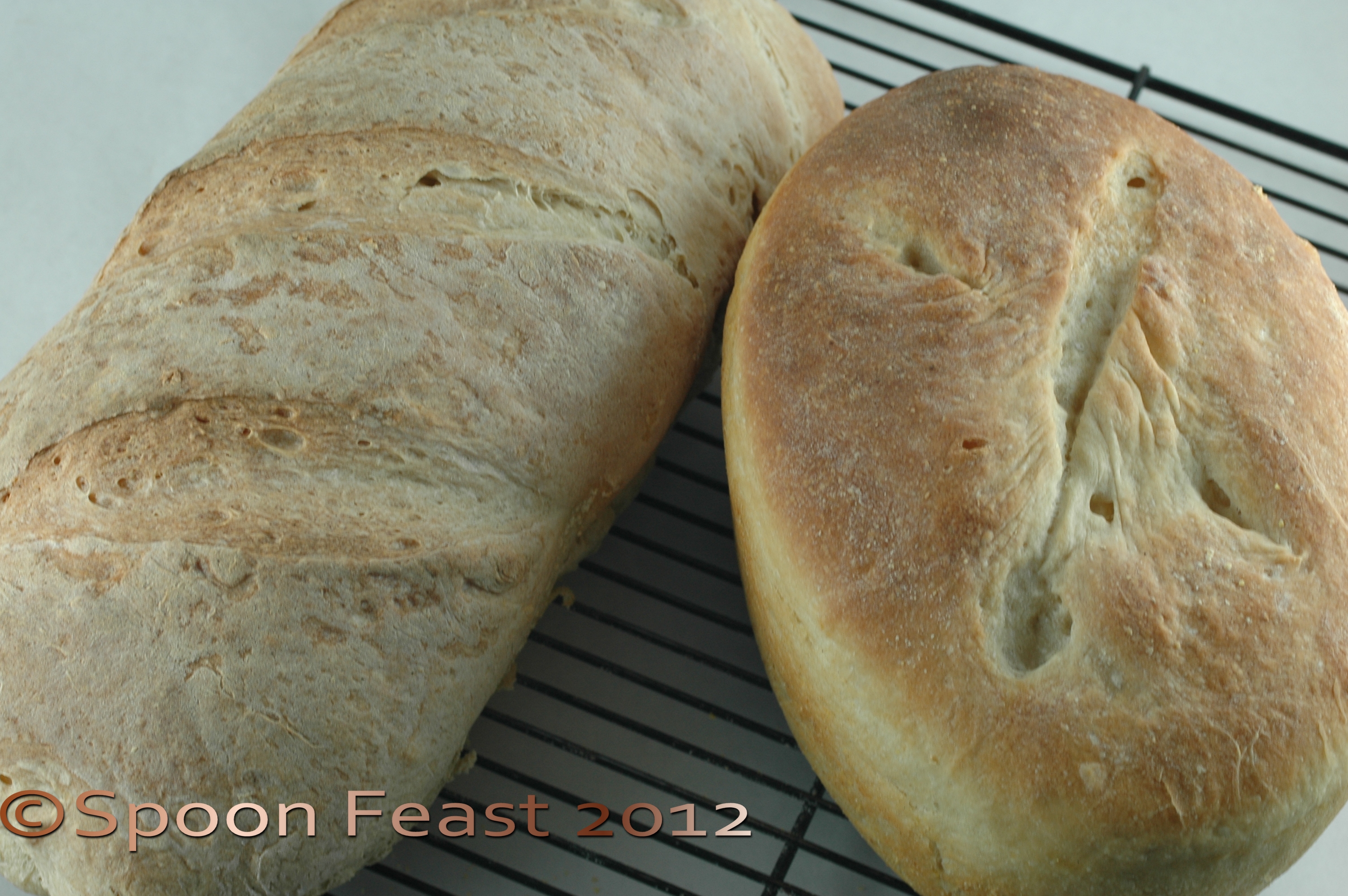 I have two loaves: one a traditional artisan loaf baked free form and the other in a cast iron pot.