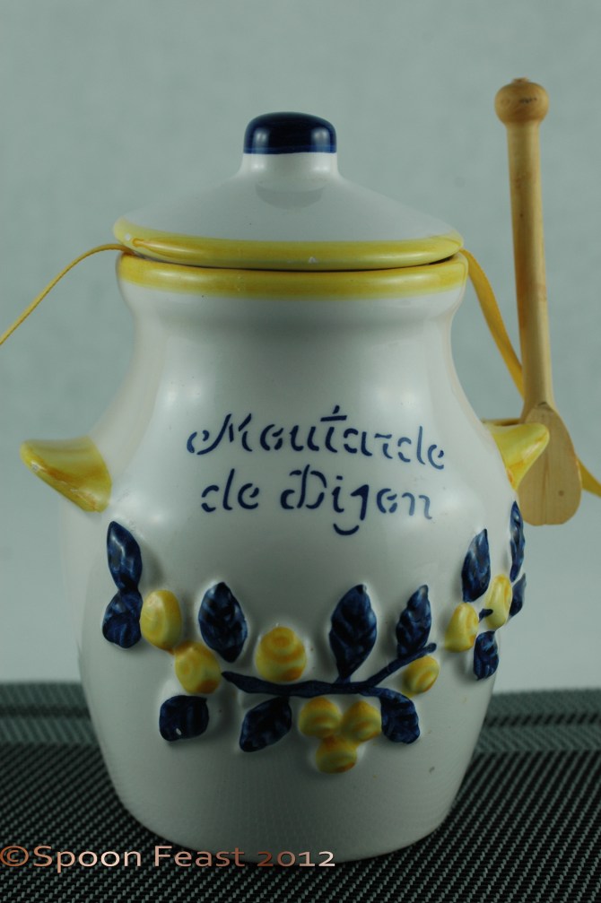 This mustard crock has a story. I bought it in Charles de Gaulle airport on my return to the US. At customs in Pennsylvania, the agent wanted to confiscate it but I refused to let them. I had to go back to the bathroom and wash out the mustard, dry the crock and go through customs again. I wanted the crock. Too bad about the mustard.