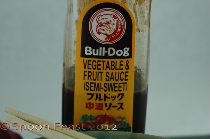 Place the fried cutlet on top of the rice and drizzle with Bulldog sauce.