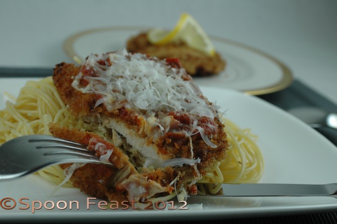 You can create Chicken Parmesan by topping the golden brown cutlet with marinara sauce and cheese – I am partial to Asiago – but Parmesan, or mozzarella are just fine too.