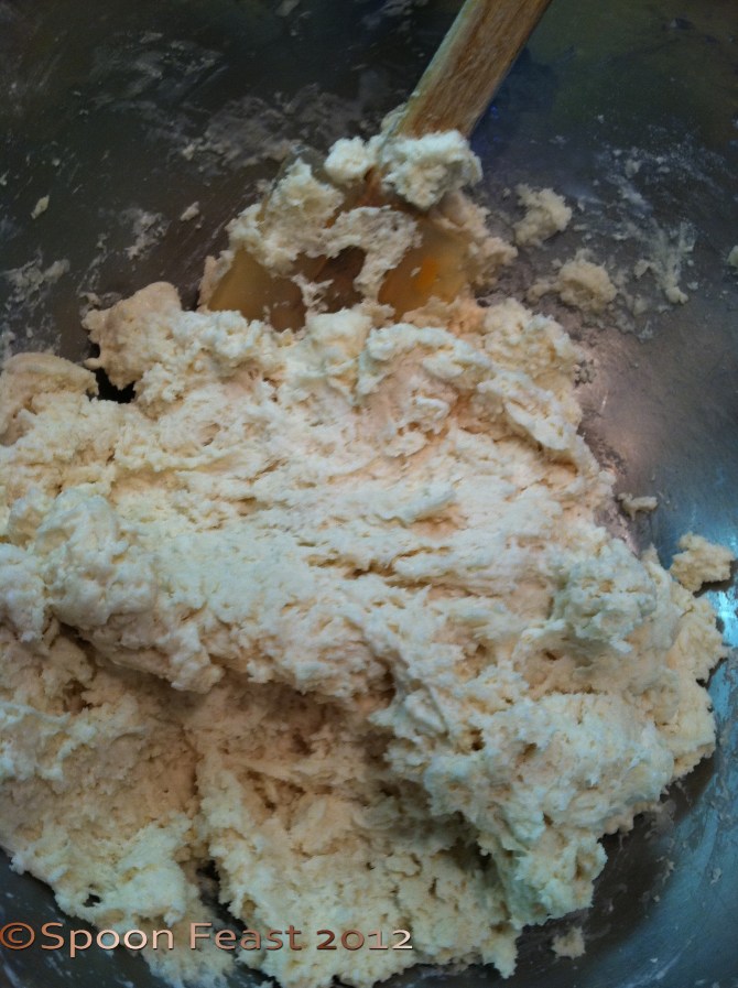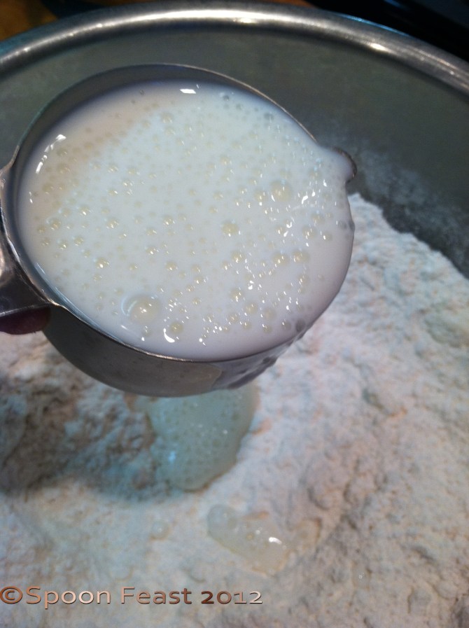 Make a well in the center of the flour, pour the buttermilk in and fold to make a sticky mass.