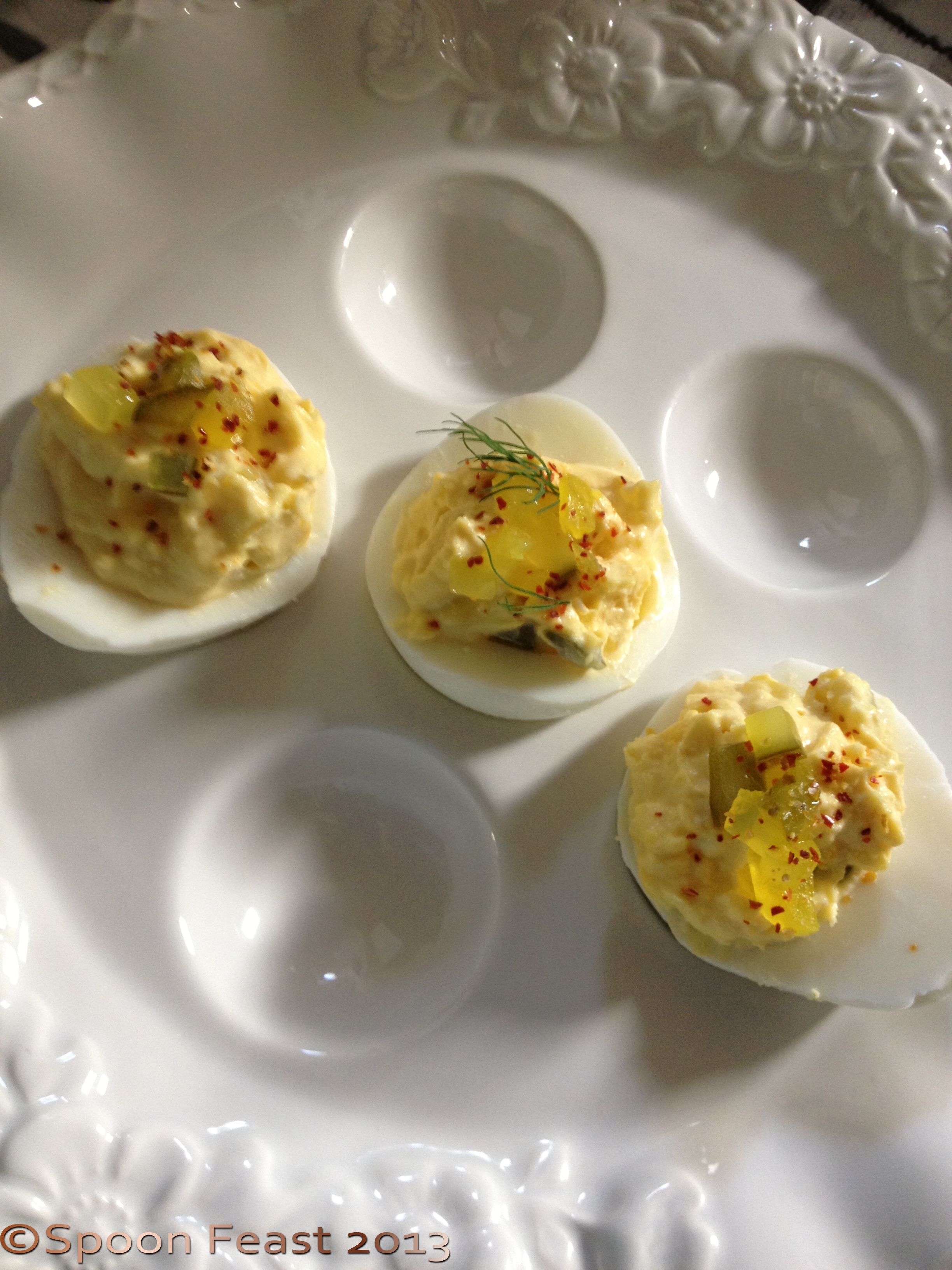 One of the features in the In My Kitchen post this month is an egg plate. The photo shows the plate without any eggs in it which makes the indents look more like convex domes rather than concave indents.