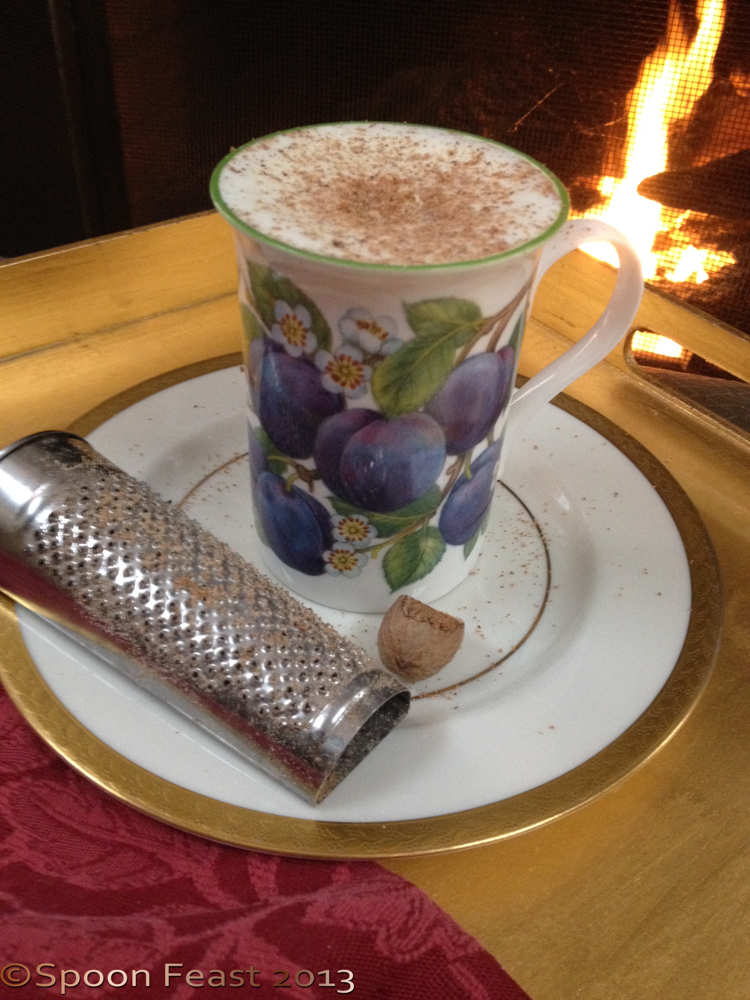 To make this cozy bedtime beverage, simply warm a cup of milk to warm, add a spoonful of honey and grate a teaspoon of fresh nutmeg over the top. For added luxury, steam the milk with a cappuccino steamer for lots of froth on top.