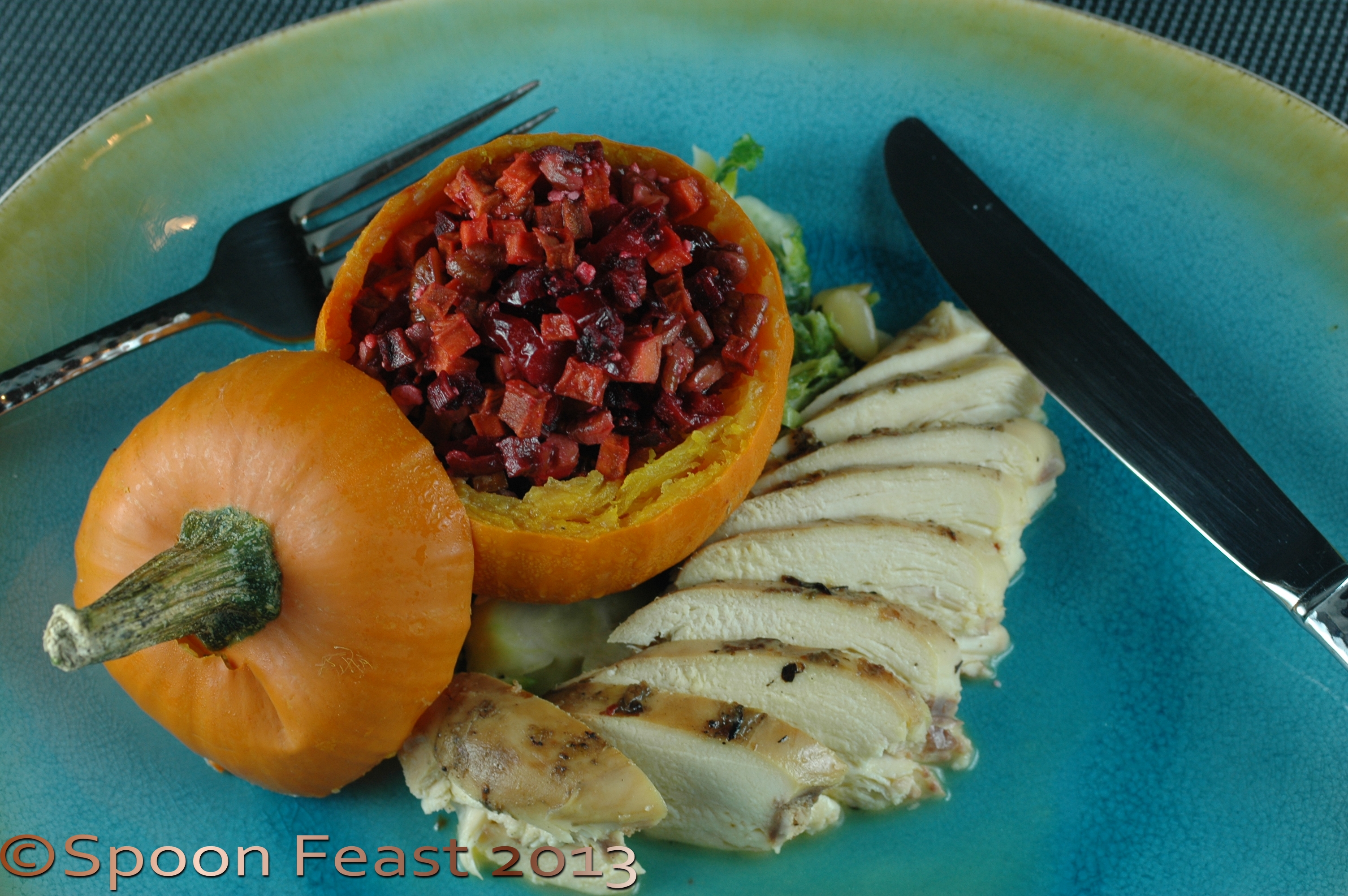 Pumpkins Stuffed Roasted Beet, Sweet Potato, Dried Cranberries with Toasted Pecans and Feta Cheese