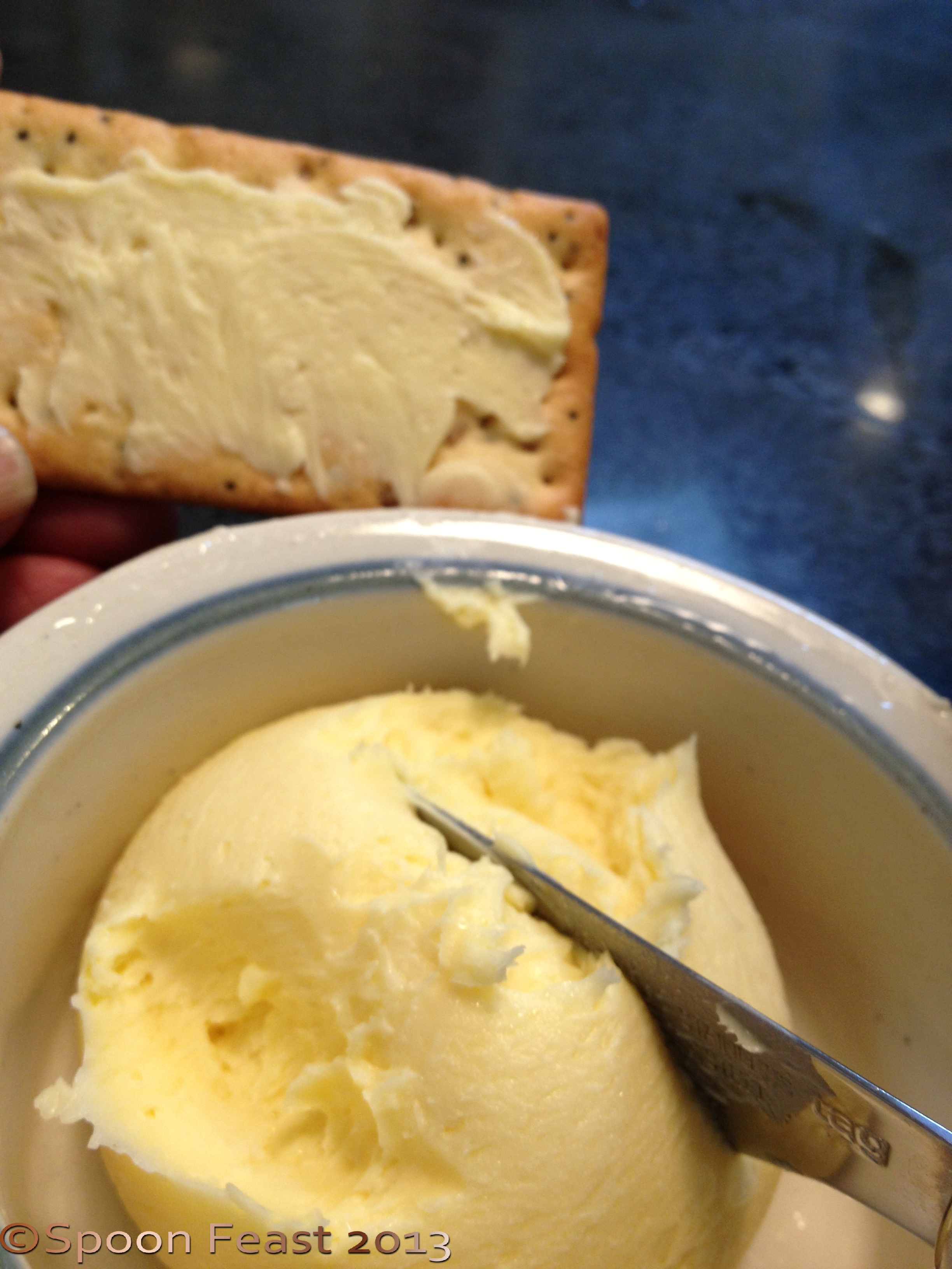 Sunday morning, Robin and Jim were making fresh butter from the butterfat that floated to the top of the whey from Saturdays cheese making.