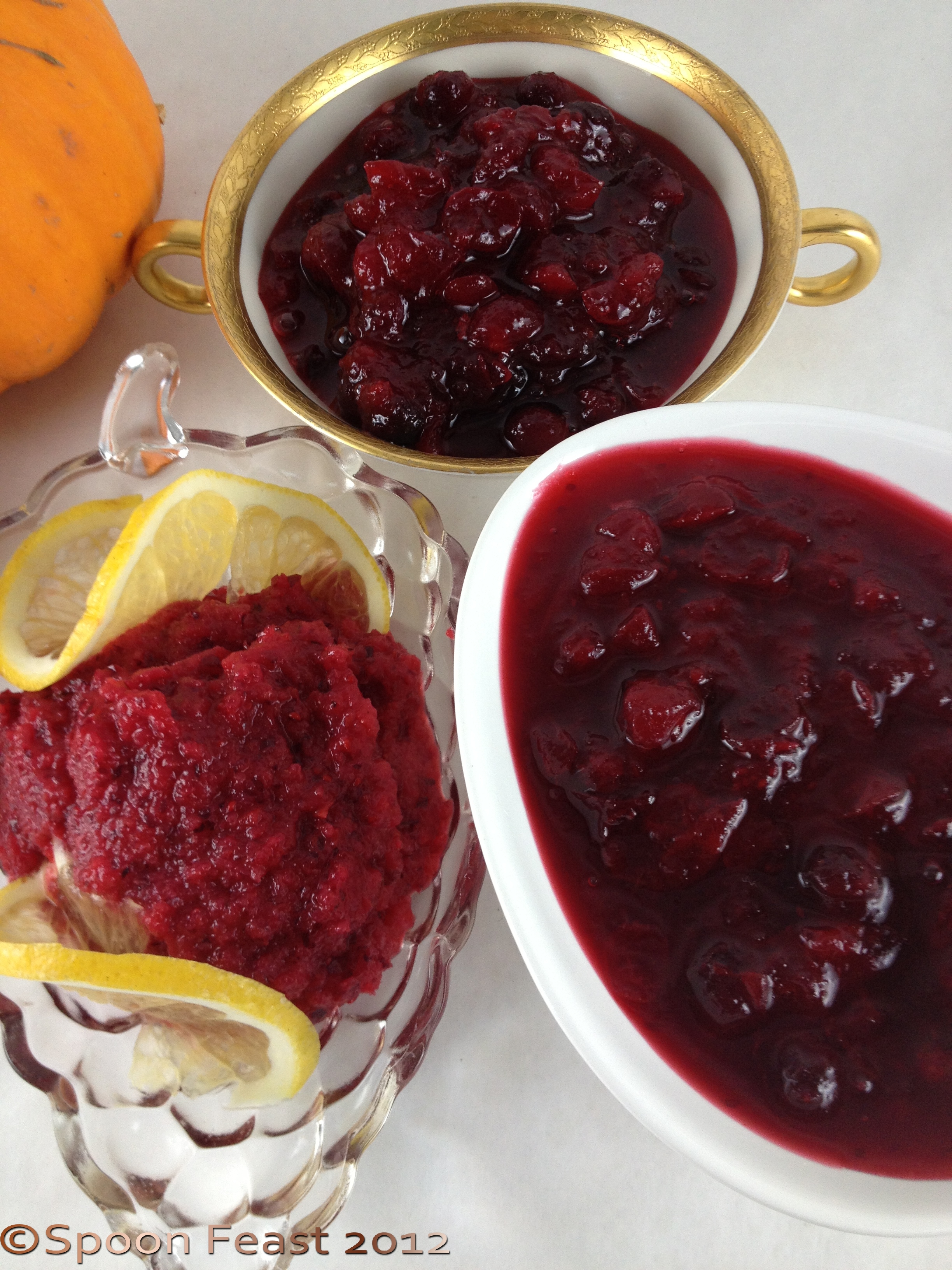 3 Cranberry sauces from left to right: Orange Cranberry, Easy Cranberry Sauce and Sherried Cranberry Sauce