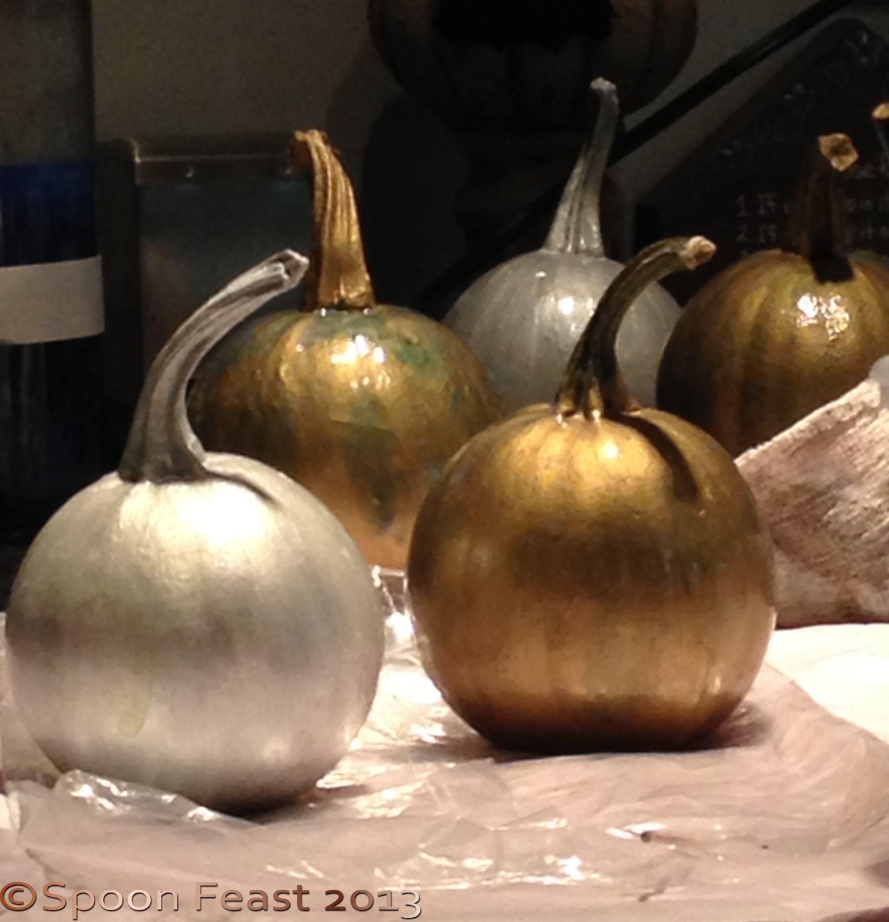 Painted Pumpkins Lined up to dry