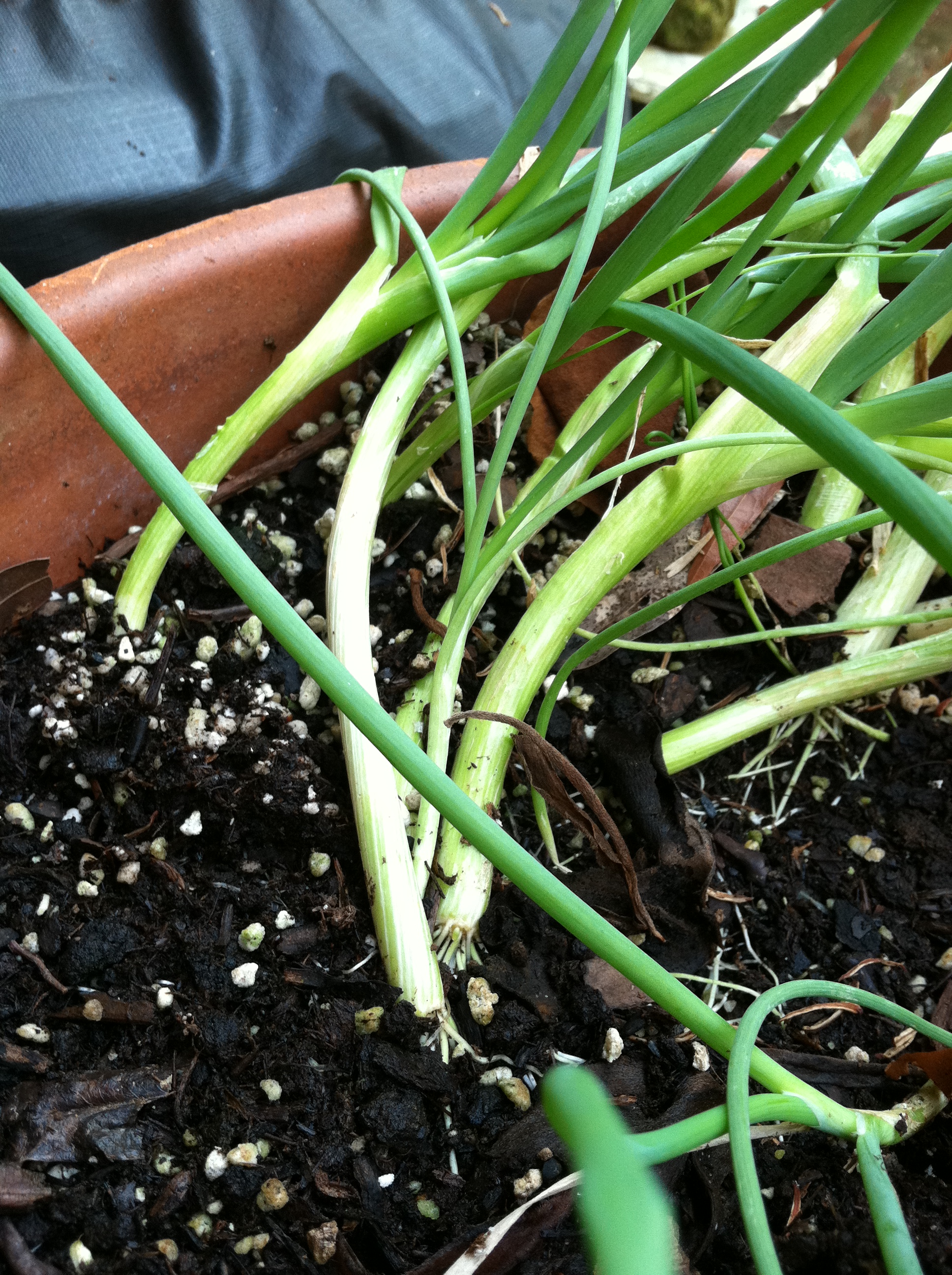 - Chives: Onion and Garlic (flat leaves) If you have extreme winters, bring them in. It is amazing to see the new shoots come back up after a cold winter. The flowers are as useful as the leaves.