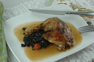 Roasted chicken with sauteed beet greens