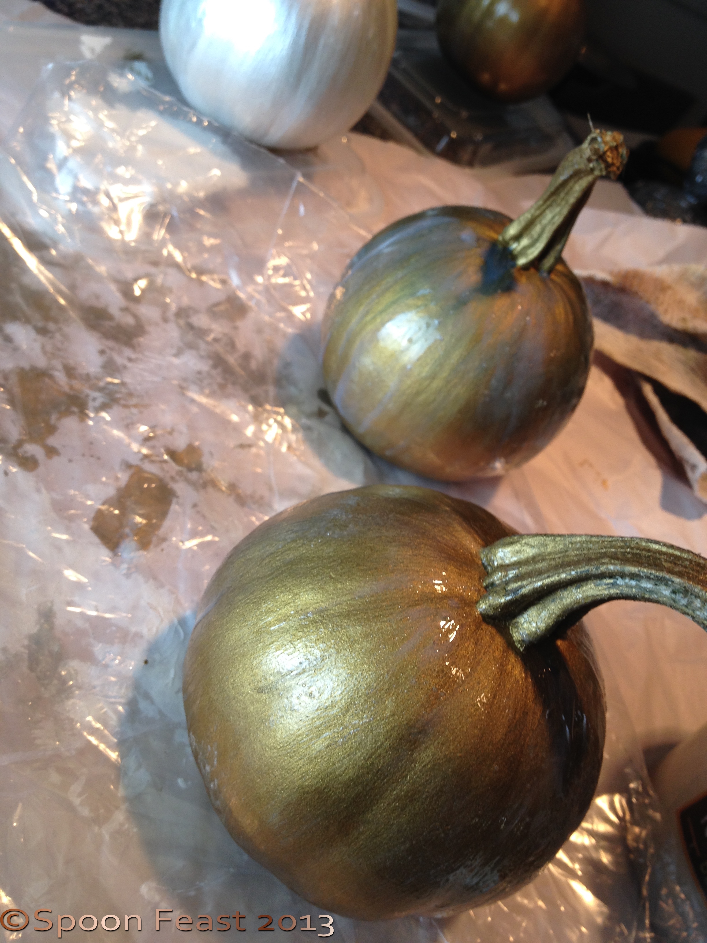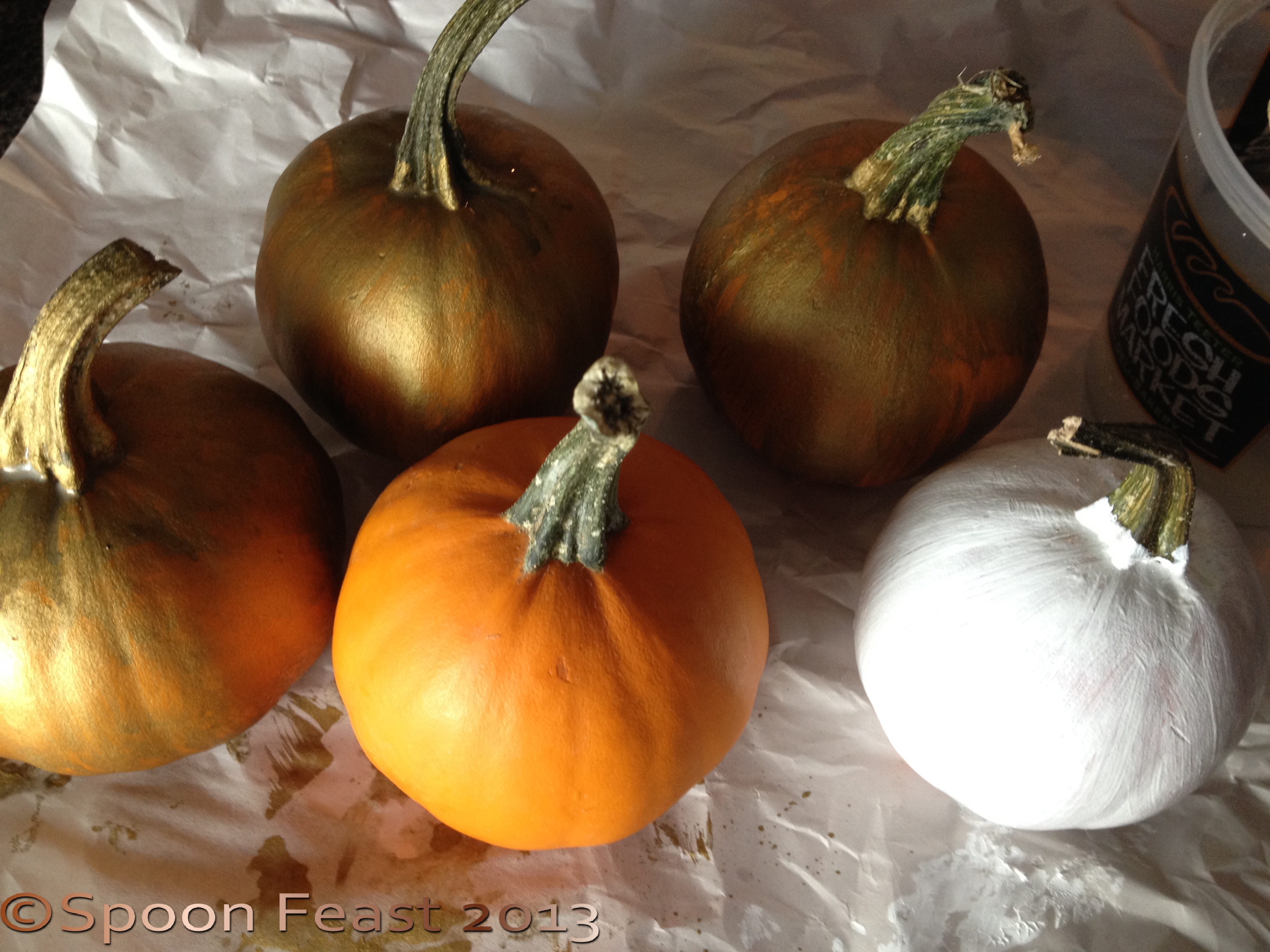 My colors this year are lime green and burgundy. Quite traditional, don’t you think? These pumpkins, while still nice shapes, firm and pleasing to look at, they were still so orange.