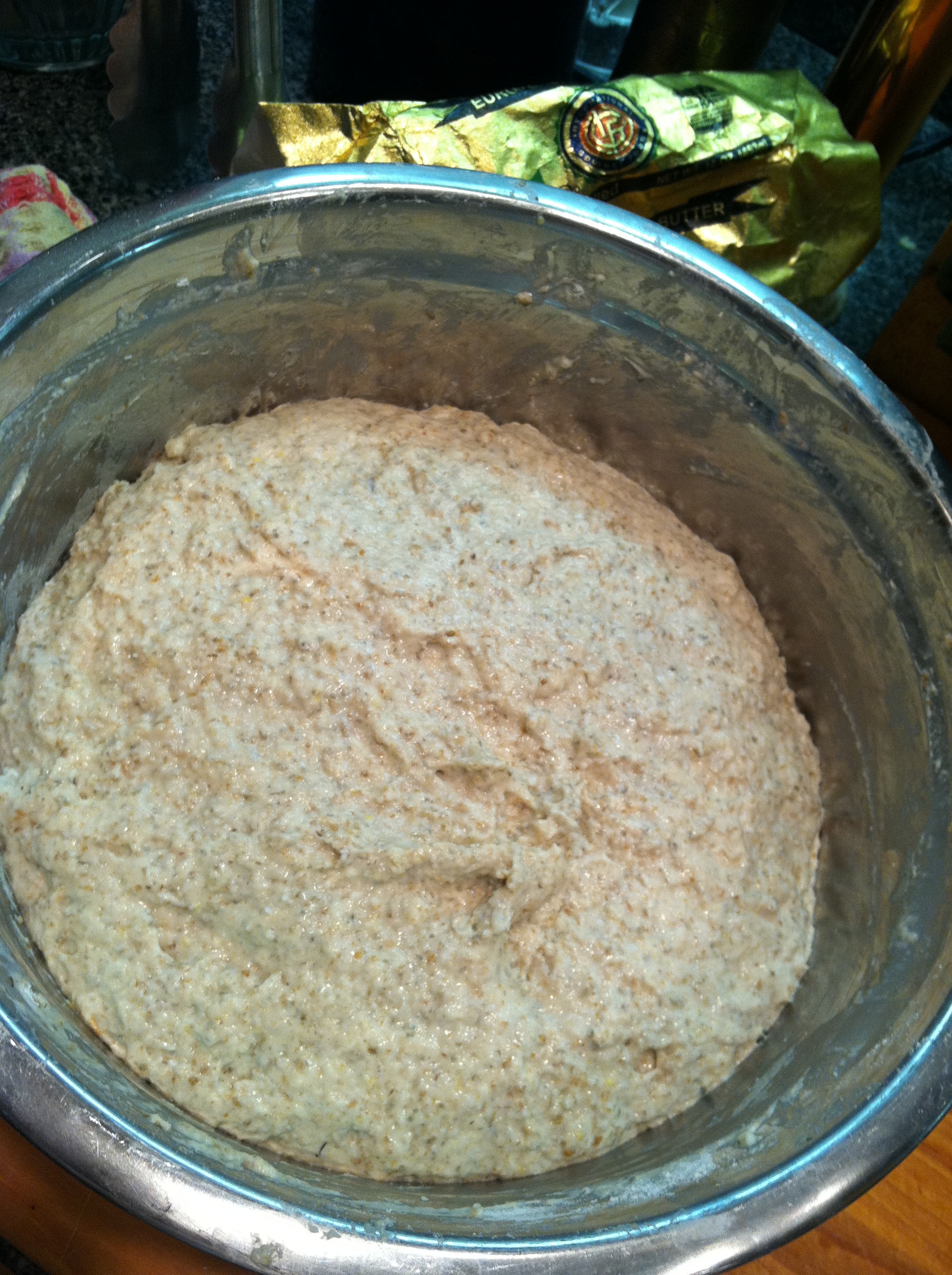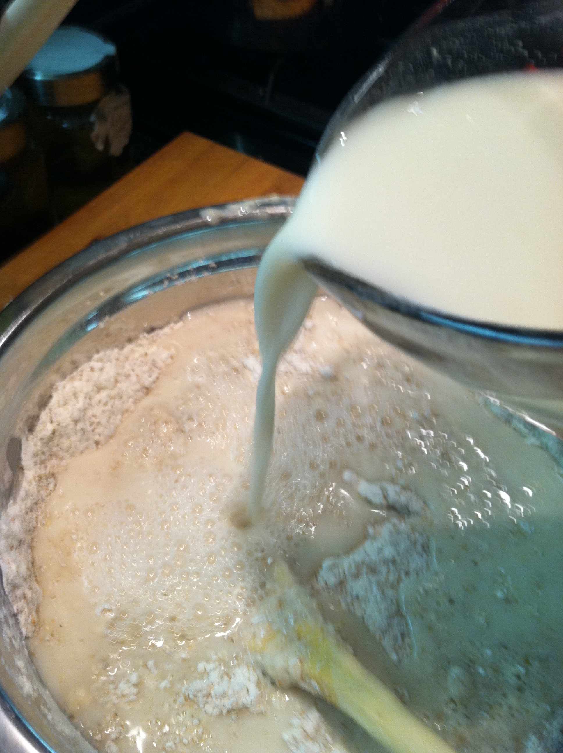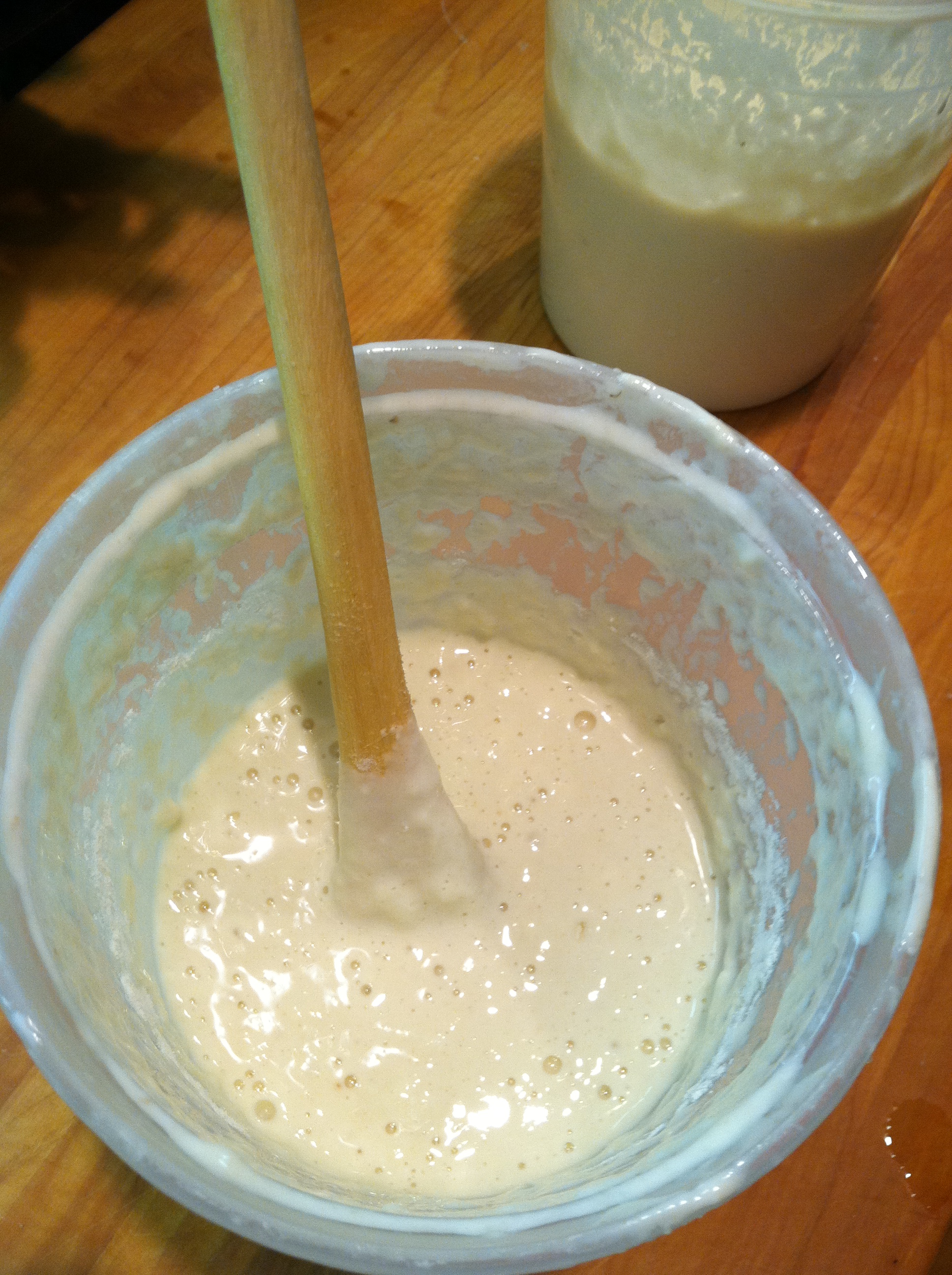 Mix it thoroughly and let sit in a warm room until it bubbles and doubles in size.